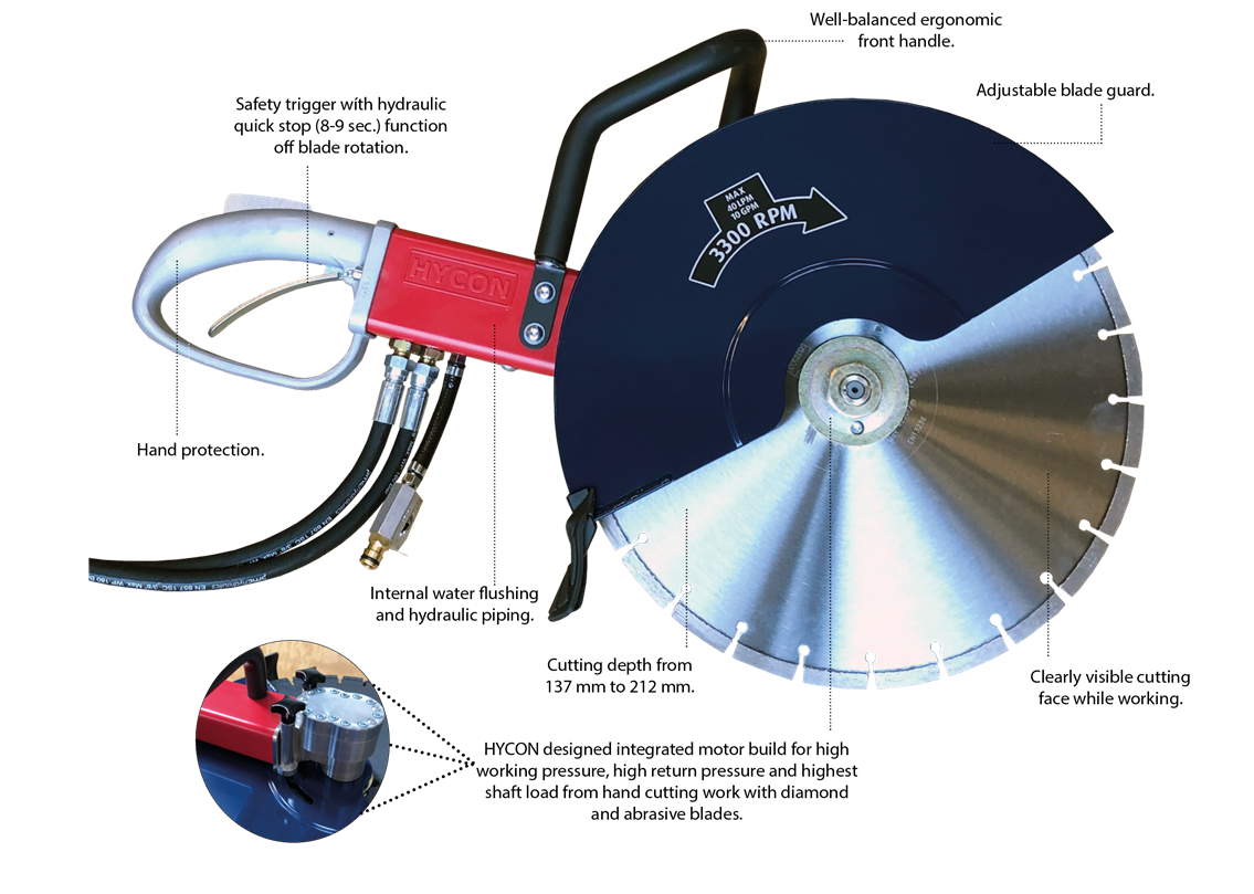 High quality gear motor with direct drive, ensures the lowest maintenance requirements – especially compared to belt driven 2 stroke engine saws.