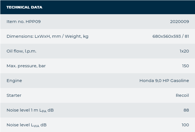 The HPP09 operates any 20 lpm tools such as breakers, saws, pumps and core drills at maximum performance.