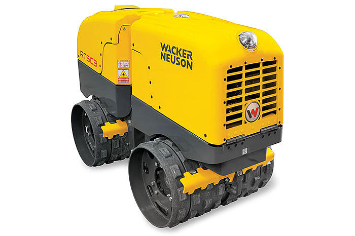 The RT trench roller is ideally suited for the compaction of excavations and sub bases of foundations, roads and parking lots. The compaction of cohesive soils is the RT’s specialty. The sheepsfoot drums, together with the adjustable centrifugal force, achieve optimum results. Available in two different drum widths. The remote control system uses infrared technology for maximum safety: The machine is disabled as soon as the line of sight between operator and device is lost. The proximity recognition sensor stops the RT as soon as it moves within 2 m of the operator.