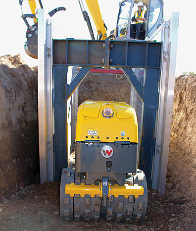 A patented third infrared receiving eye on top of the Trench Roller provides permanent contact with the remote control even in the trench shoring.